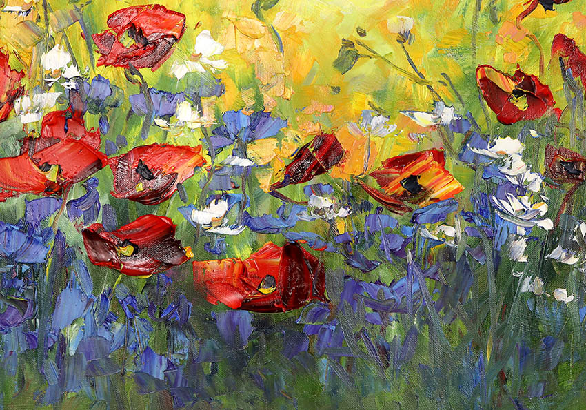 Tytuł obrazu: Chabry, maki i rumianki