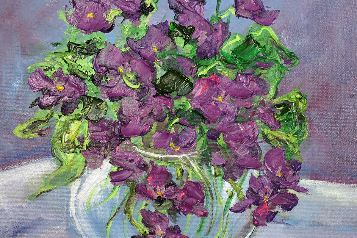 Tytuł obrazu: Fiołki w dzbanku