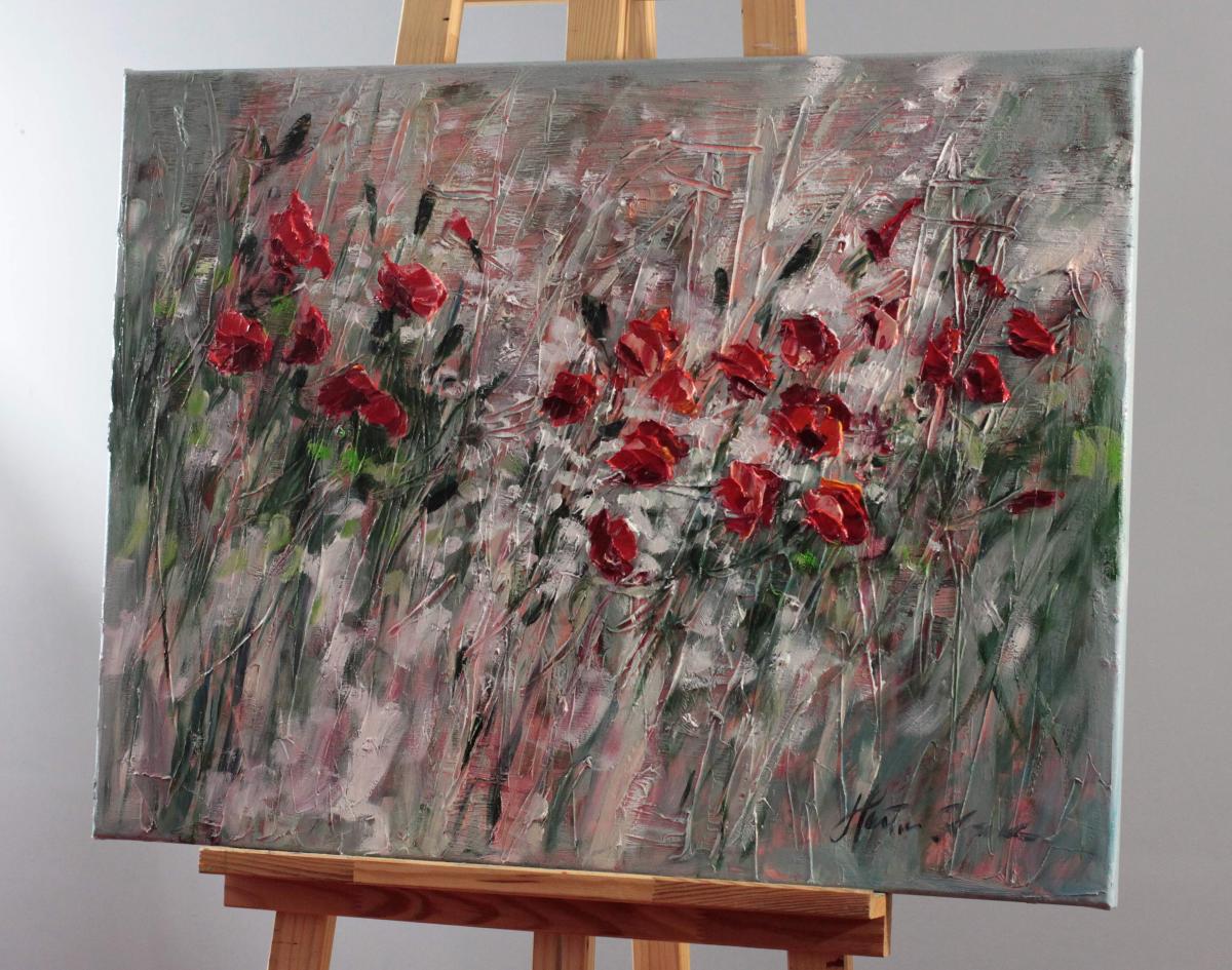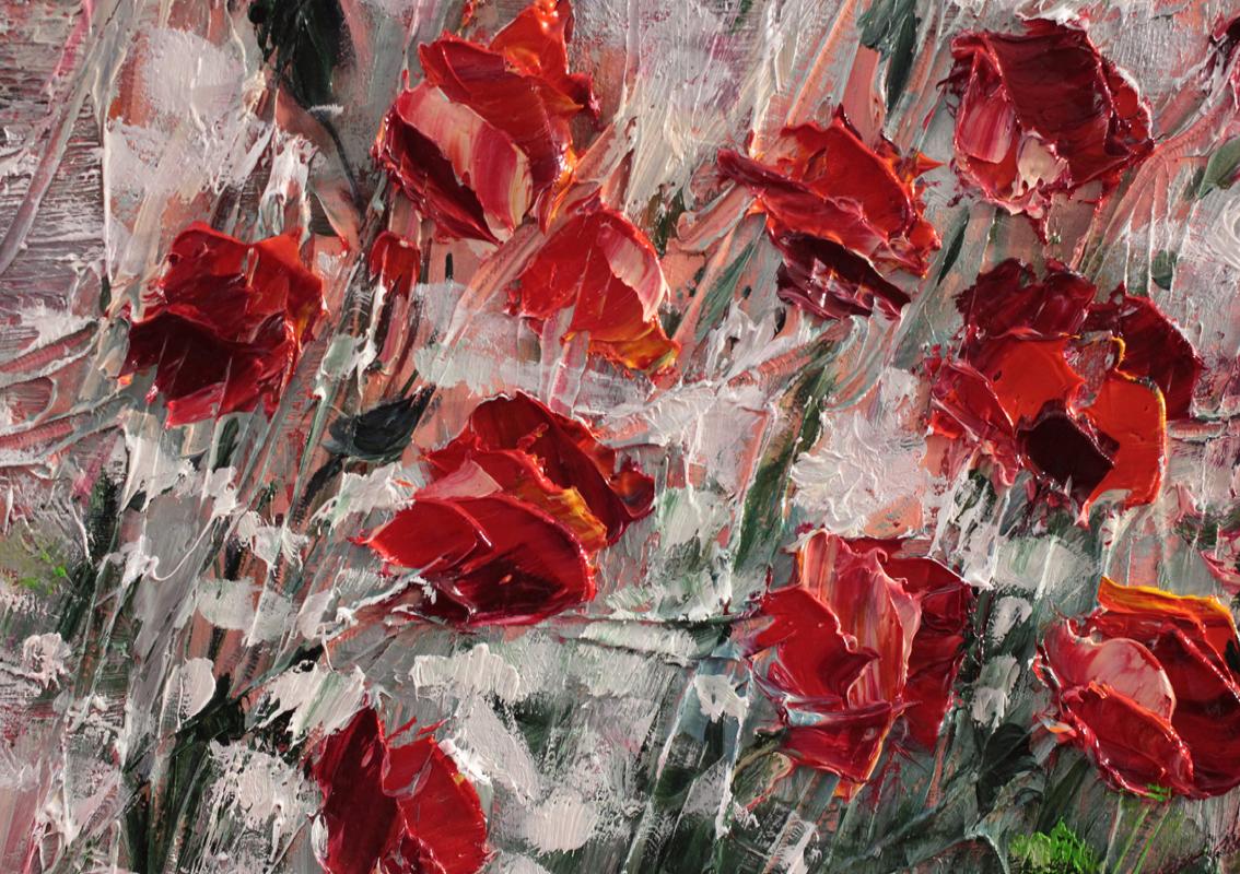 Tytuł obrazu: Maki na białym skrawku łąki