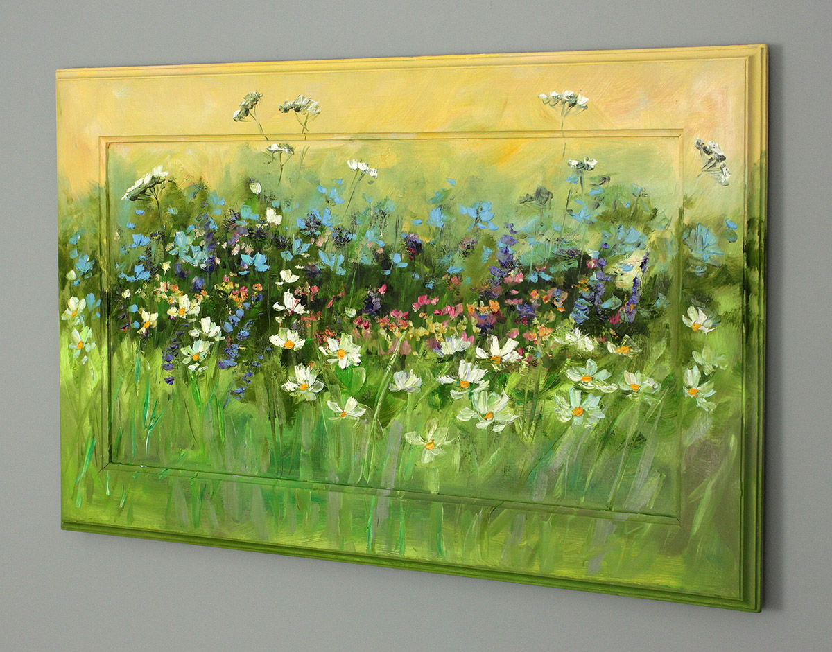 Drewniana rama pokryta jest farbą olejna jako przedłużenie obrazu