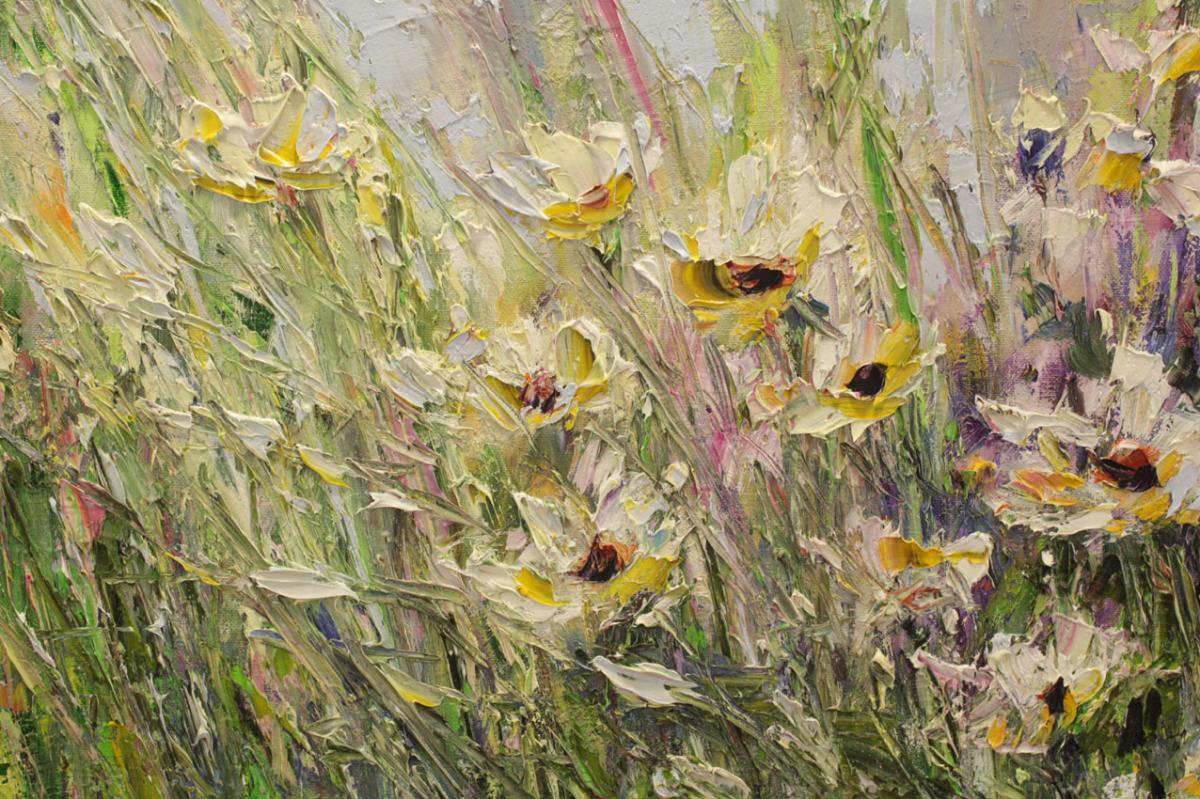 Tytuł obrazu: Rumianki splątane w trawie