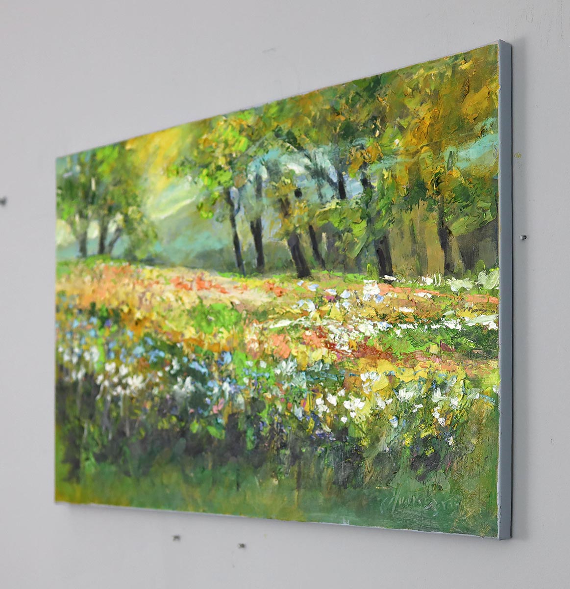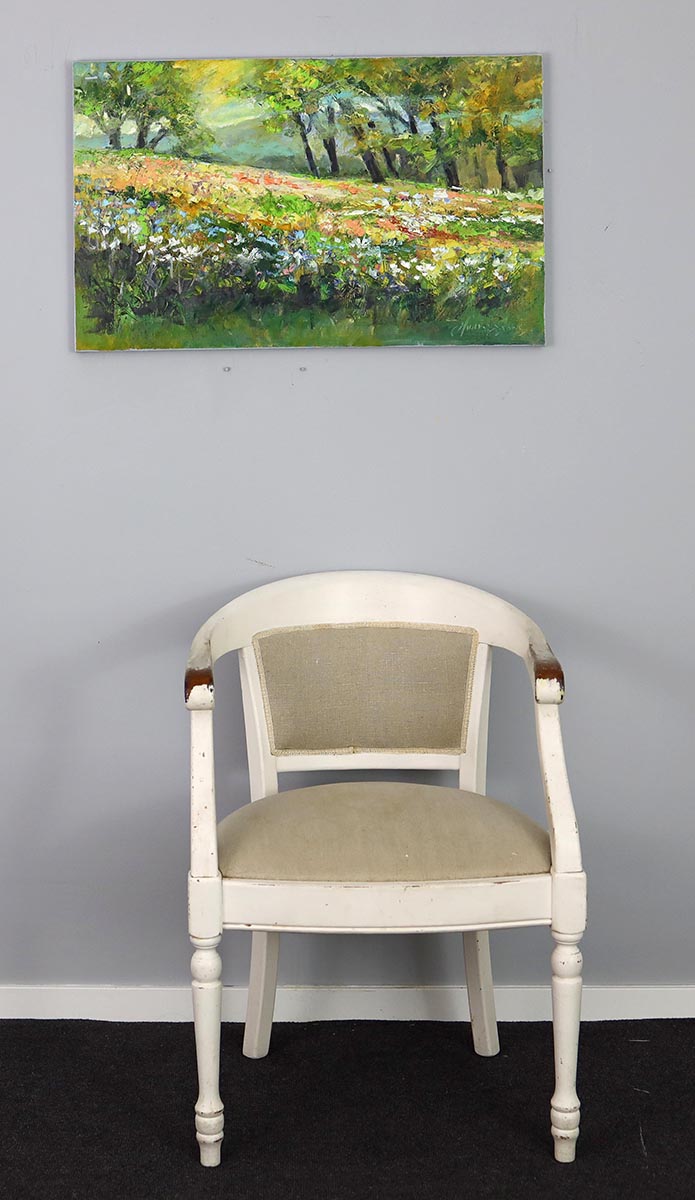 Artystka z dużą swobodą operuje kolorem i fakturą. Dynamiczne pociągnięcia pędzla oraz bogata, strukturalna warstwa farby nadają obrazowi głębię i energię. Kompozycja sprawia wrażenie ruchu – jakby trawy i kwiaty lekko poruszał letni wiatr.